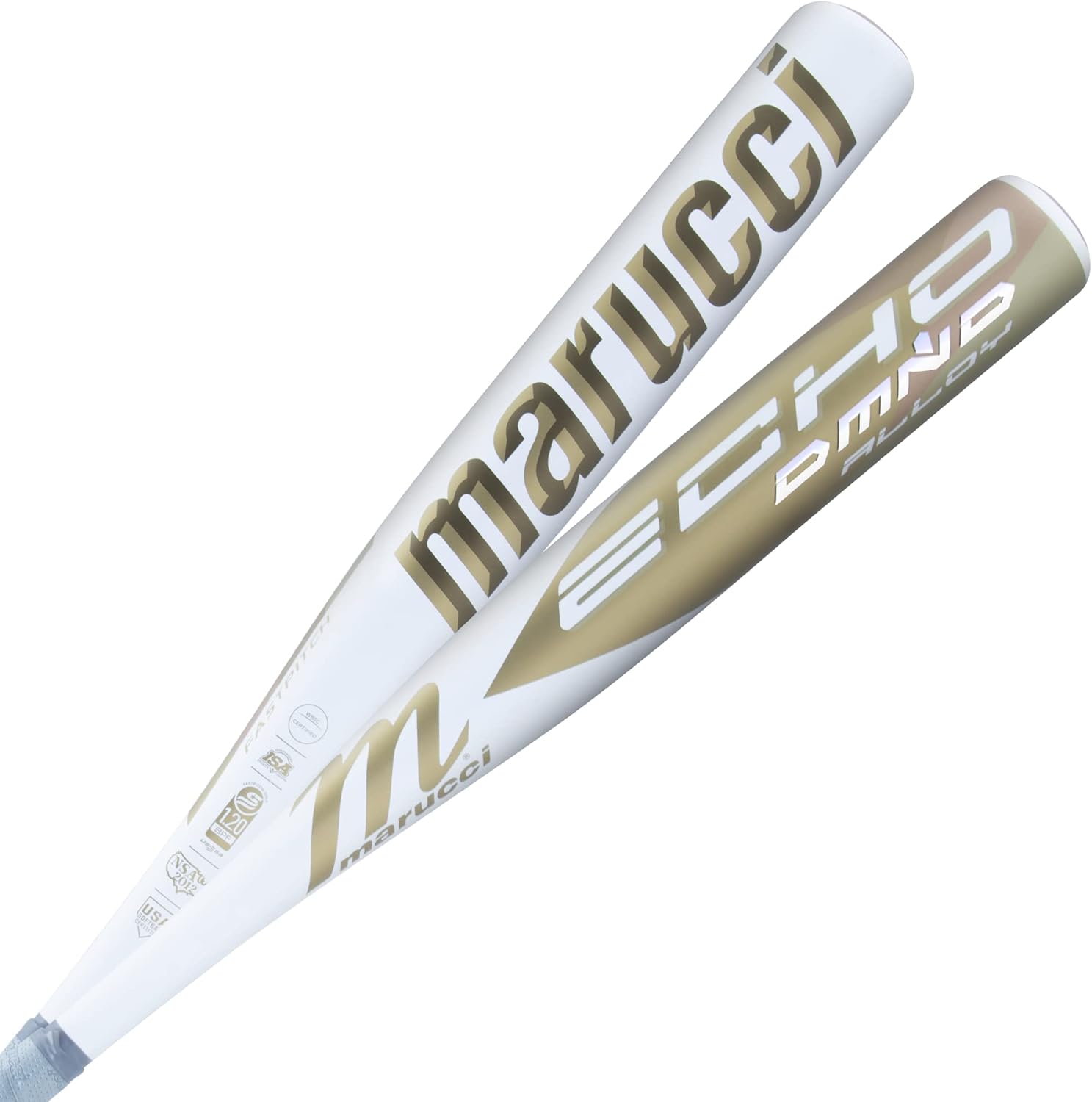 New MARUCCI Echo DMND Alloy Fastpitch BAT, 2 1/4" Barrel Gold/White